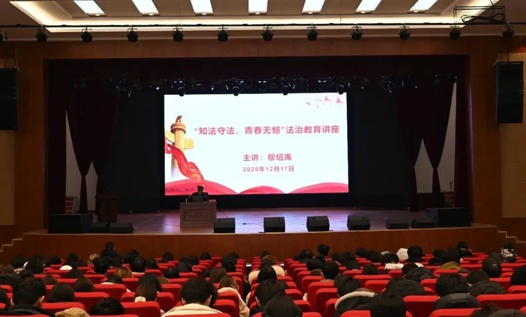 为进一步强化学生法治观念,提升法律素养,筑牢校园安全屏障,12月17日下午,由马克思主义教学部组织的 “知法守法,青春无憾”主题法治教育讲座在我院顺利开展,400余名师生代表齐聚南校区礼堂现场聆听学习。