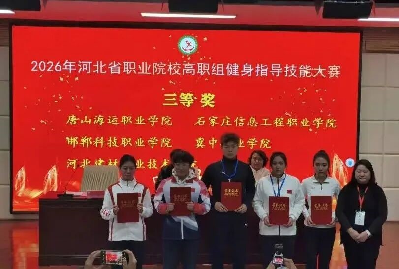 近日,2026年河北省职业院校技能大赛体育类赛项圆满落幕。我院参赛团队凭借扎实的专业功底、出色的临场表现与优良的职业风貌,在众多参赛选手中脱颖而出,斩获健身指导赛项三等奖、体育设计与实施赛项道德风尚奖两项殊荣。